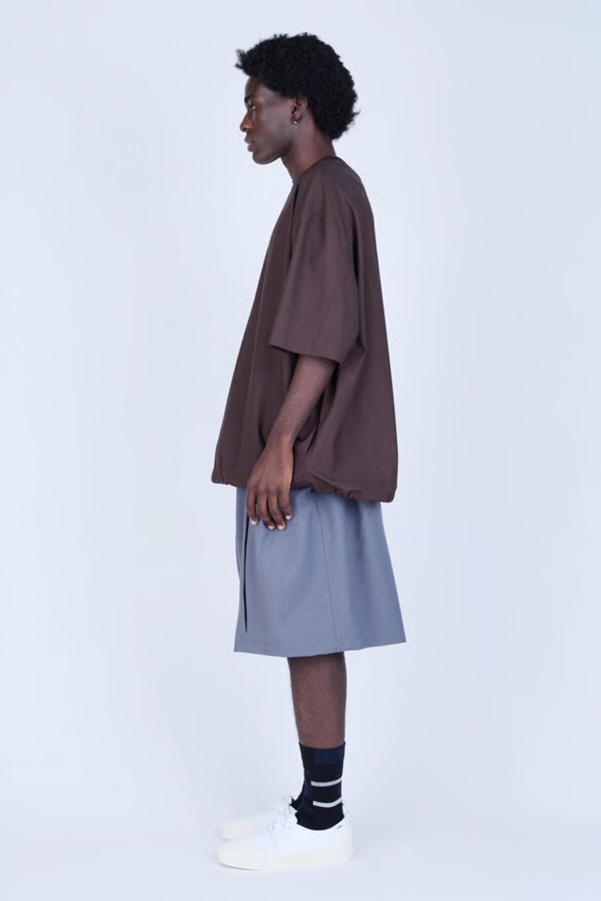 バスケットショーツから着想を得たUNTRACEオリジナルのニーショーツをベースに、フロントにはコンシールファスナーと配色のメッシュ生地を施し、通気性と視覚的なアクセントを両立。