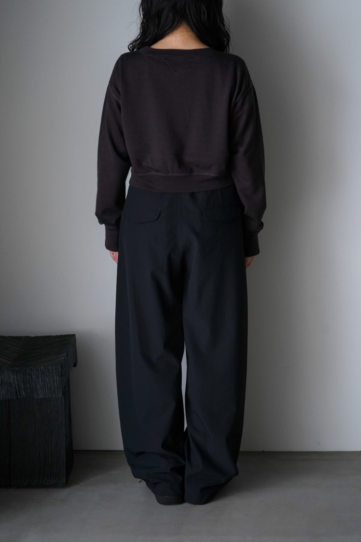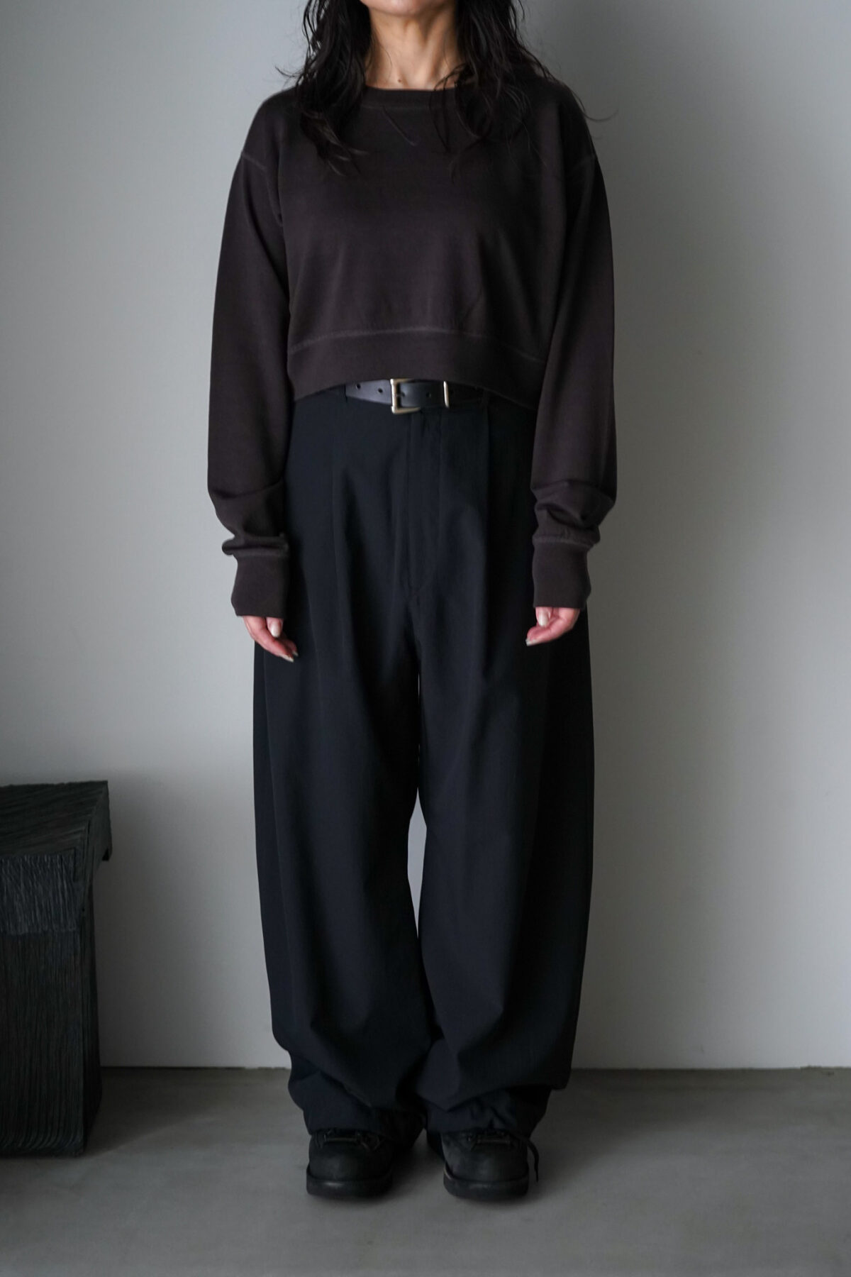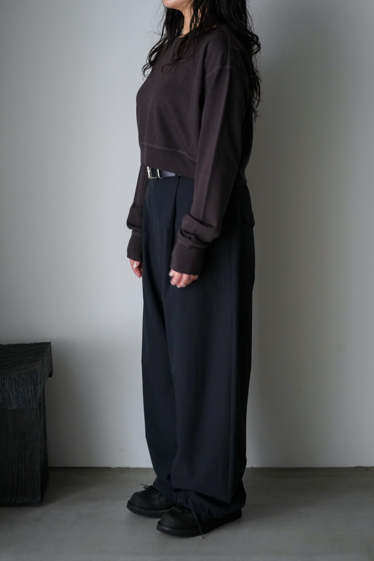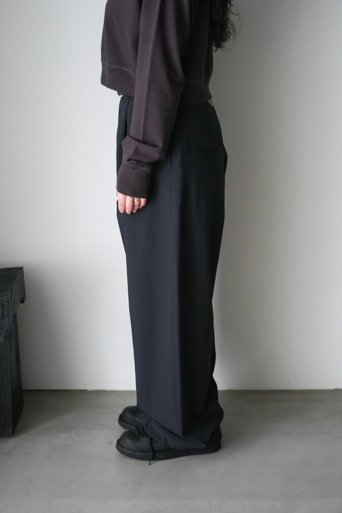 腰まわりが細く、前身に深い1タックを入れ、膝まわりにボリュームを持たせるパターンを採用することで、快適な動きをサポート。
