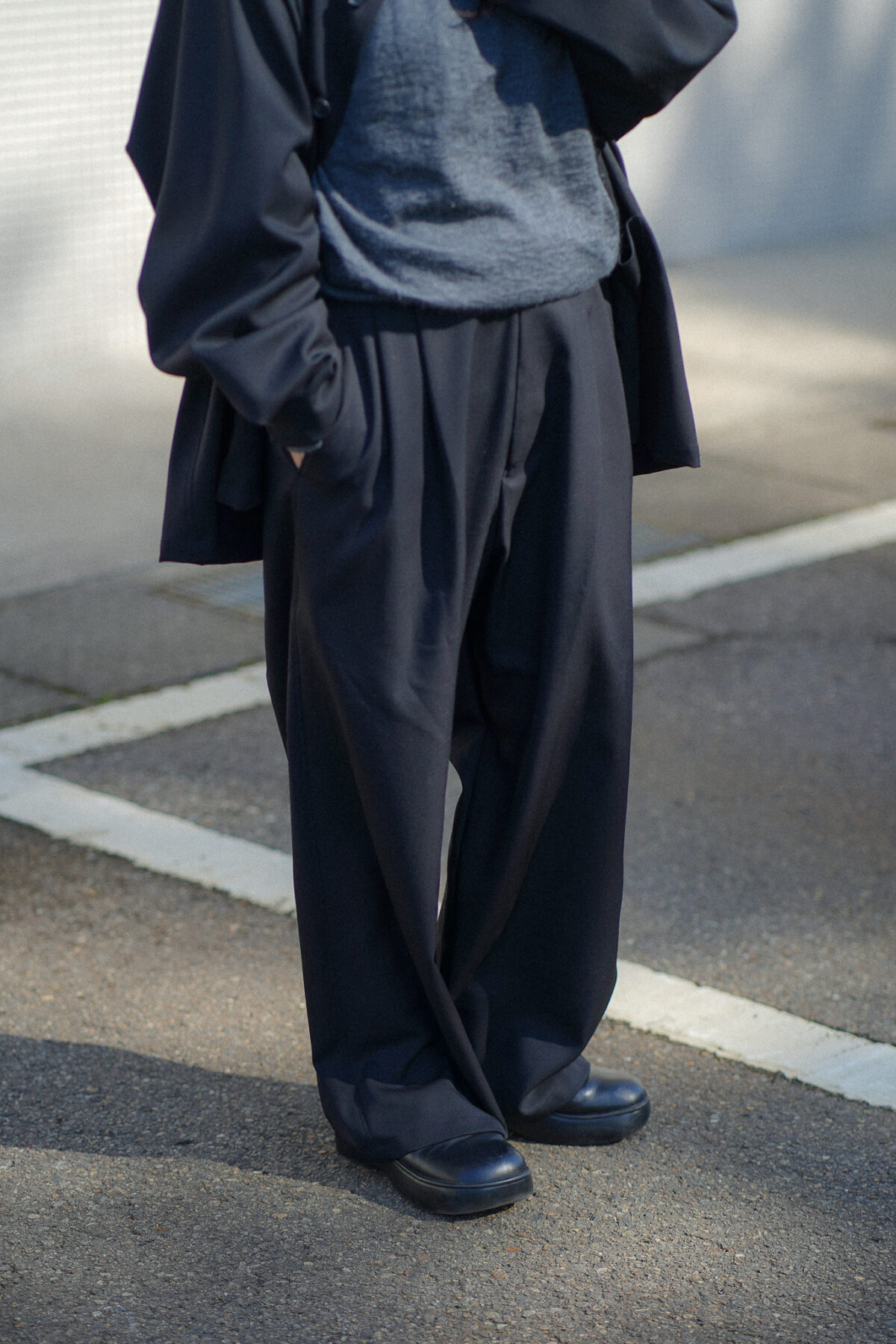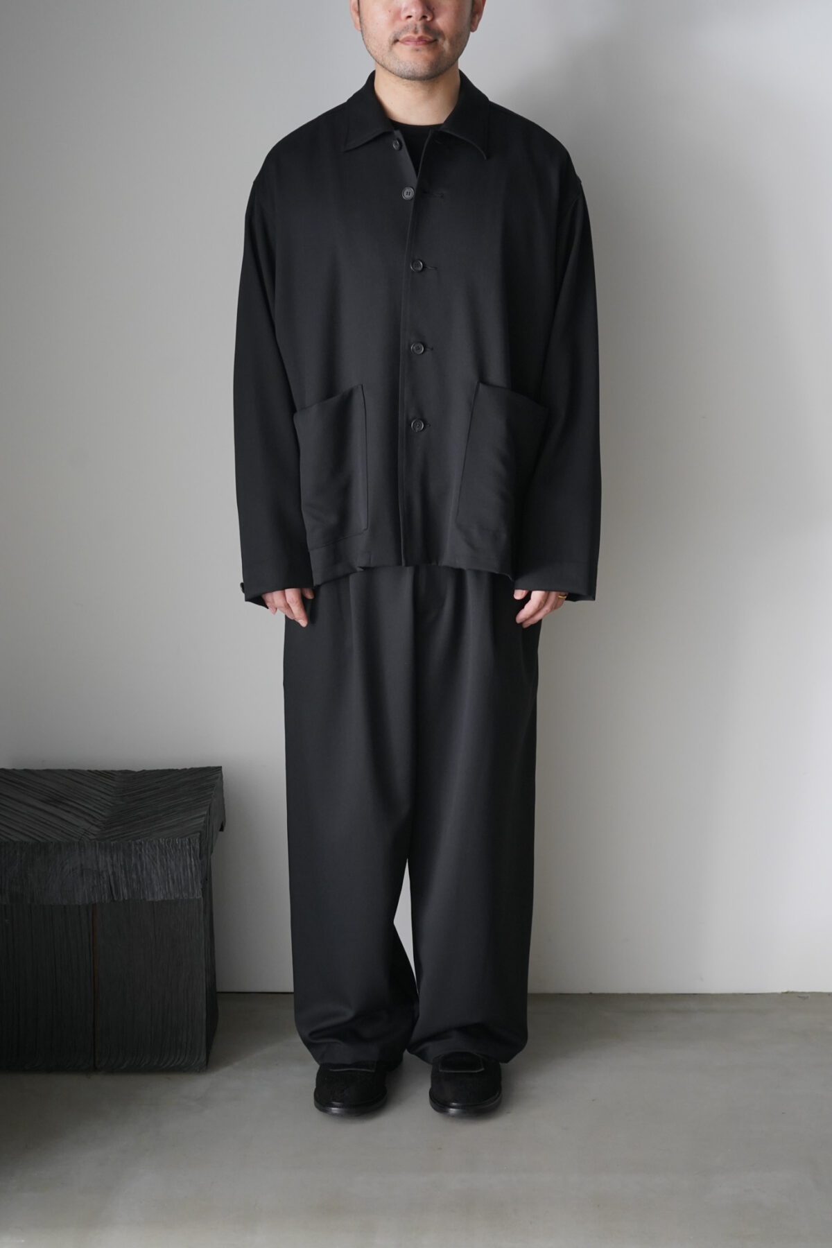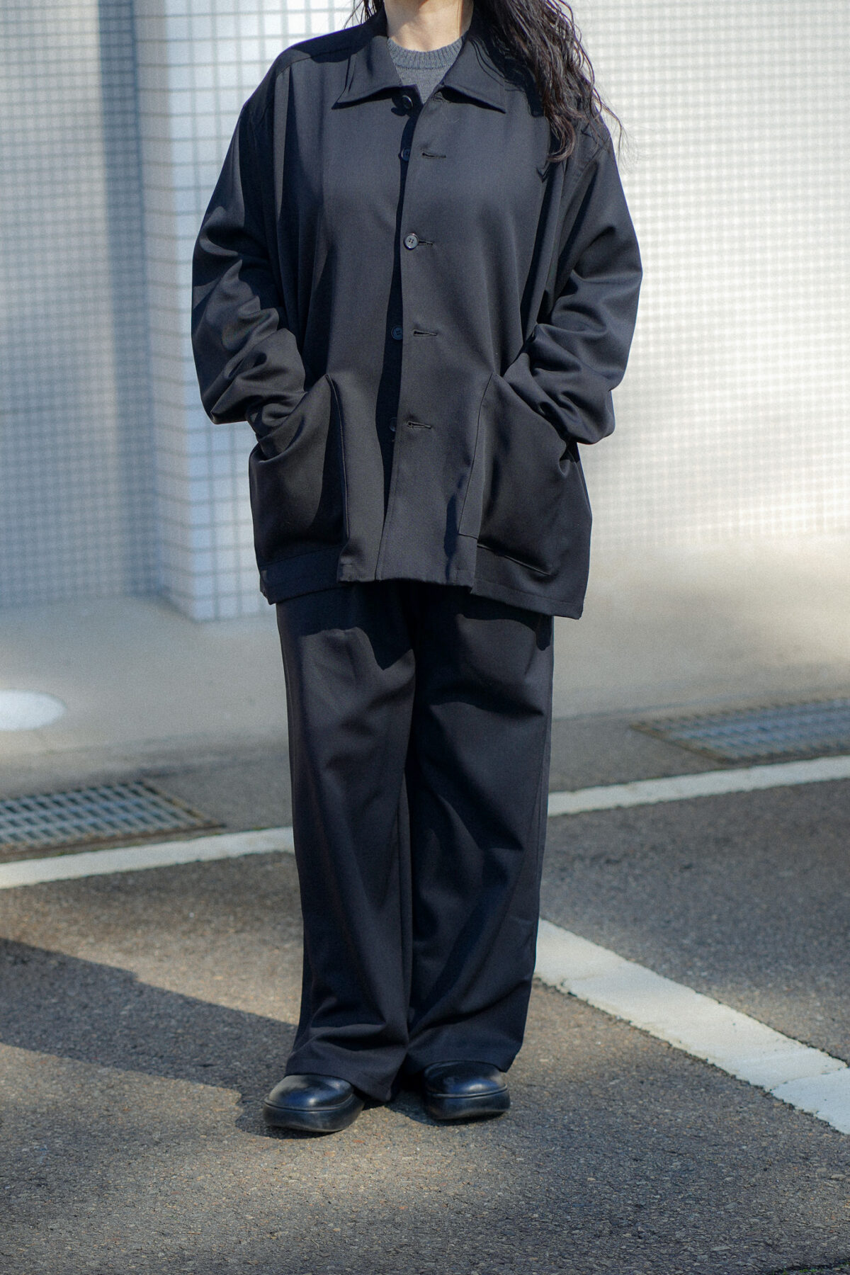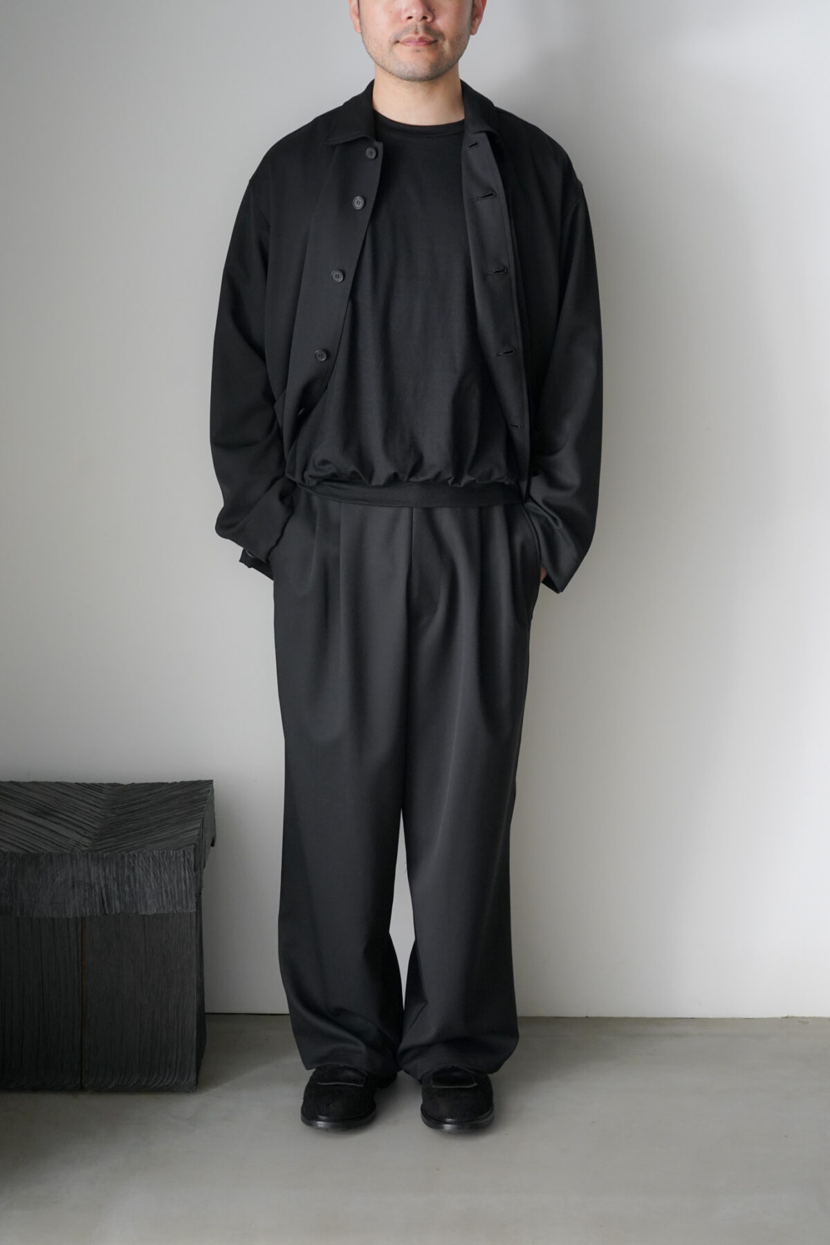 イージー仕様でありながらシルエットやドレープ感で 上品なムードを持たせた Antwort におけるユニフォーム的なプロダクト。