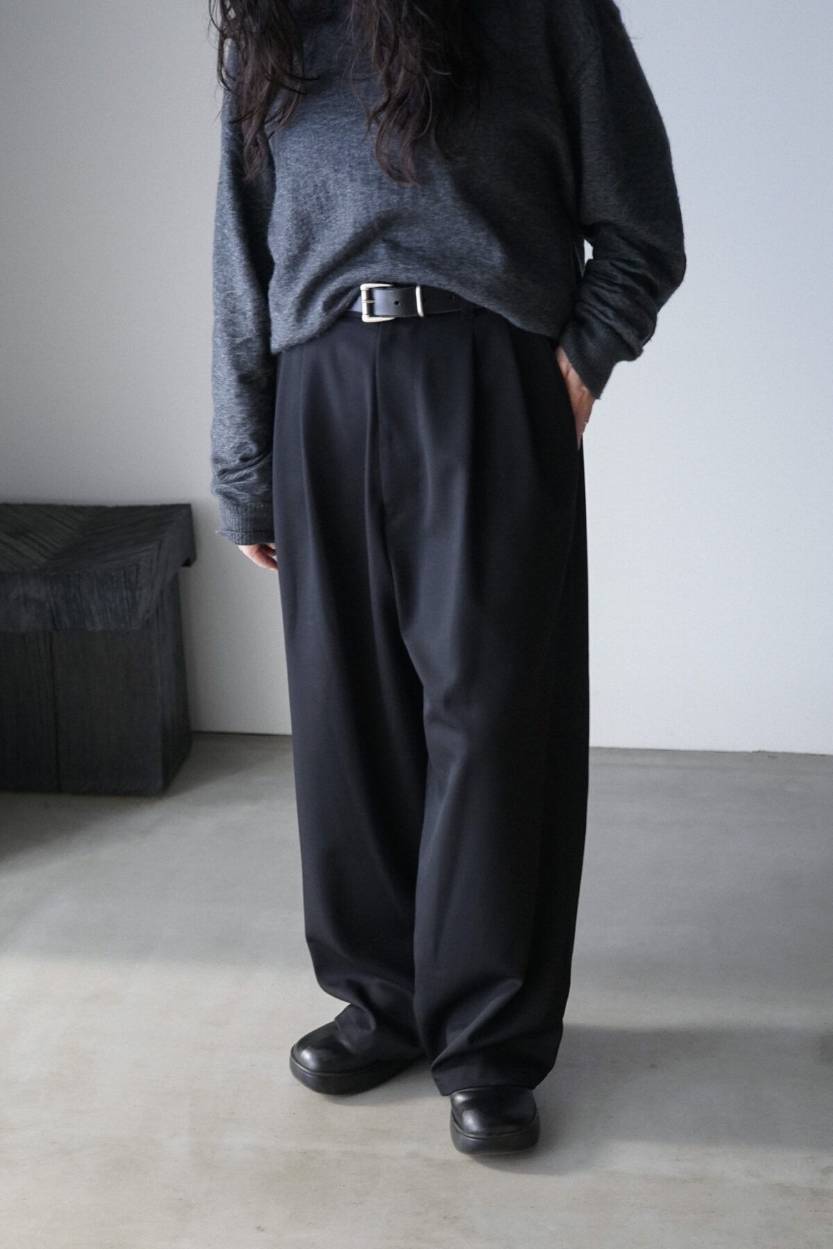 Antwort WOOL GABARDINE WIDE EASY TROUSERS BLACK