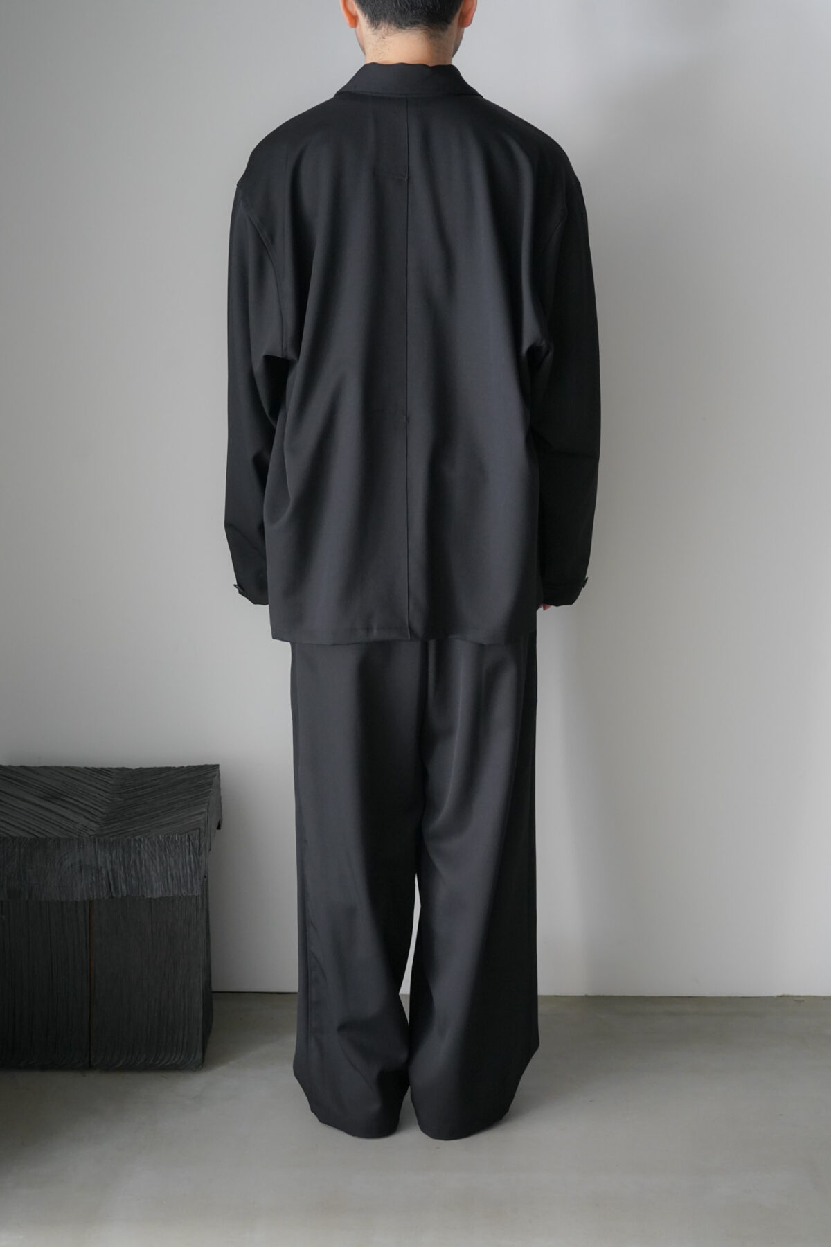 • WOOL GABARDINE WIDE EASY TROUSERS BLACK
