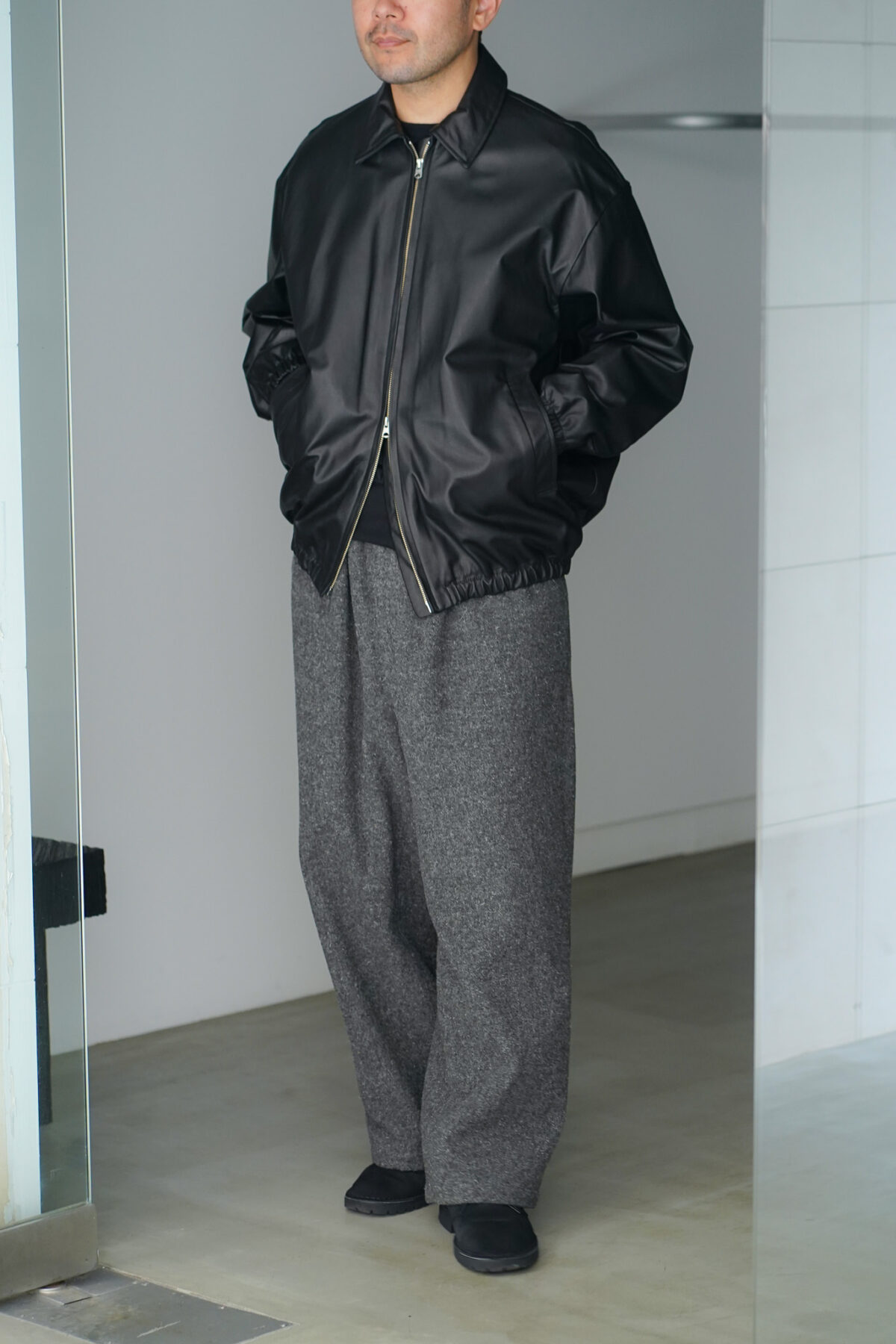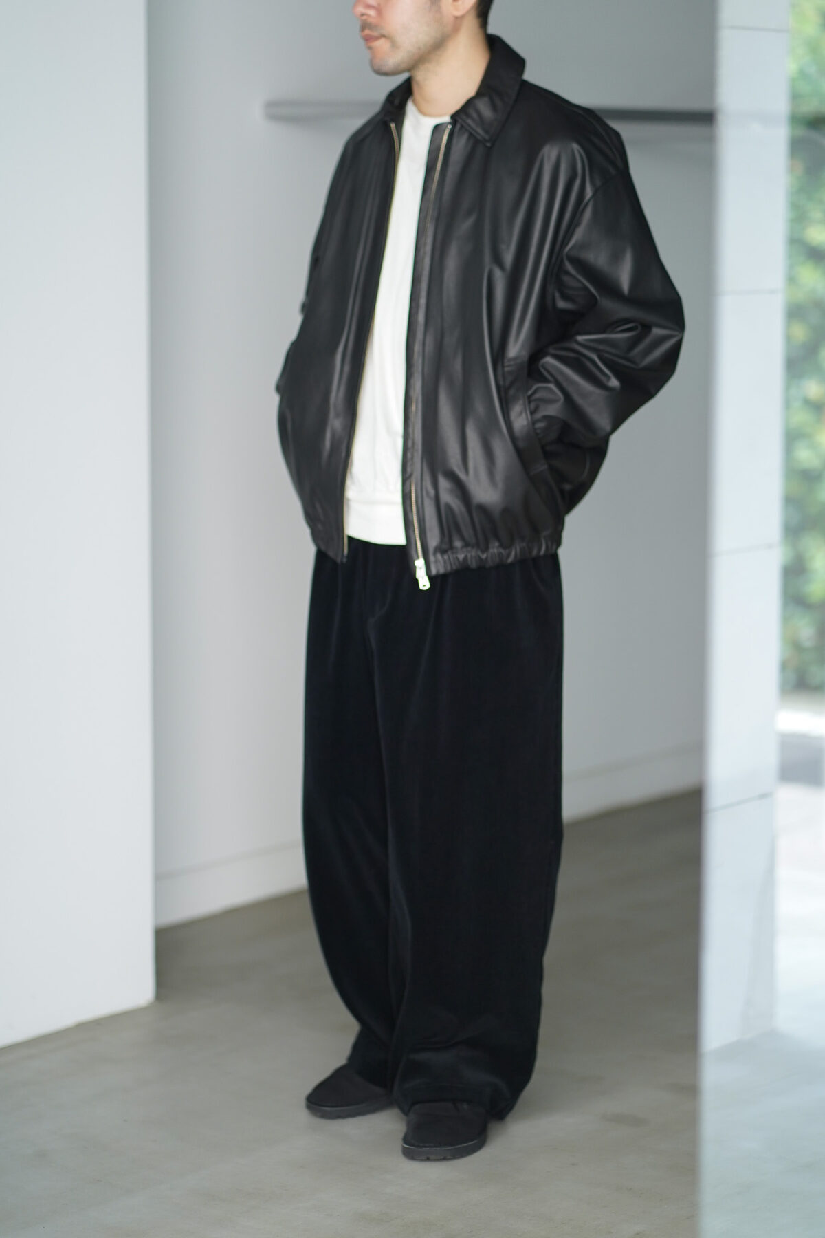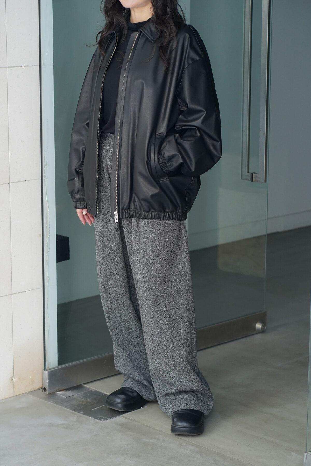 レザーアウター特有の、堅苦しさを払拭したい思いで制作したルーズなサイズ感のブルゾンジャケット。